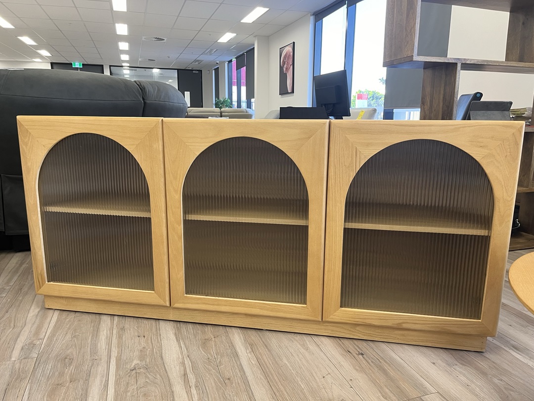 3 Door Timber Buffet with Glass Doors - Seconds Furniture